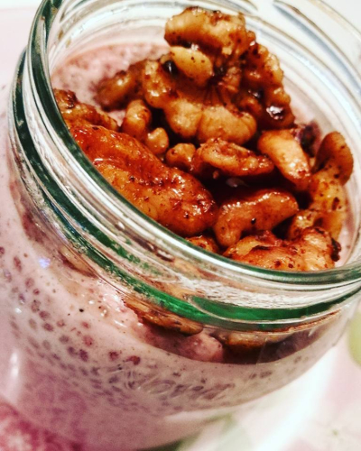 Smaker godt til frokost, lunsj eller bare til kos. Jeg lager chiapudding før jeg legger meg.