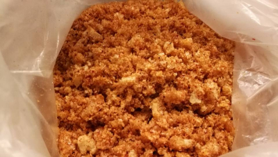 Ha bacongull i en brødpose, tilsett krydder og bland godt.