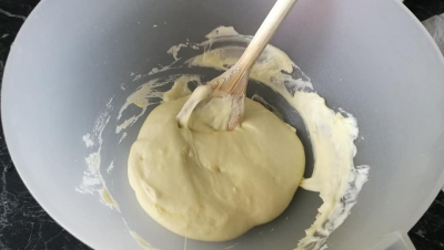 Tilsett egg og bland alt til en jevn deig.