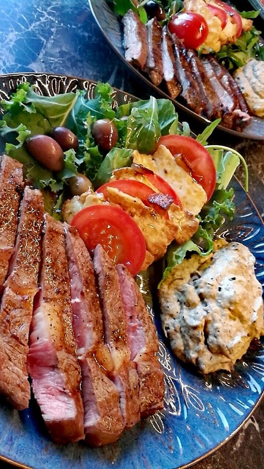 Skjær 2 store auberginer i skiver og fordel dem utover på et bakepapirkledd stekebrett. Hell over litt kaldpresset olivenolje og strø over litt havsalt og ferskmalt pepper. Stekes midt i ovnen på 200 grader til de synker litt sammen og er gylne. Ha auberginer, et par fedd hvitløk, en god glugg kaldpresset olivenolje, 2 ss meierismør og litt fløte i en foodprosessor og blendt det til en jevn pure. Smak til med ferskmalt pepper og havsalt.