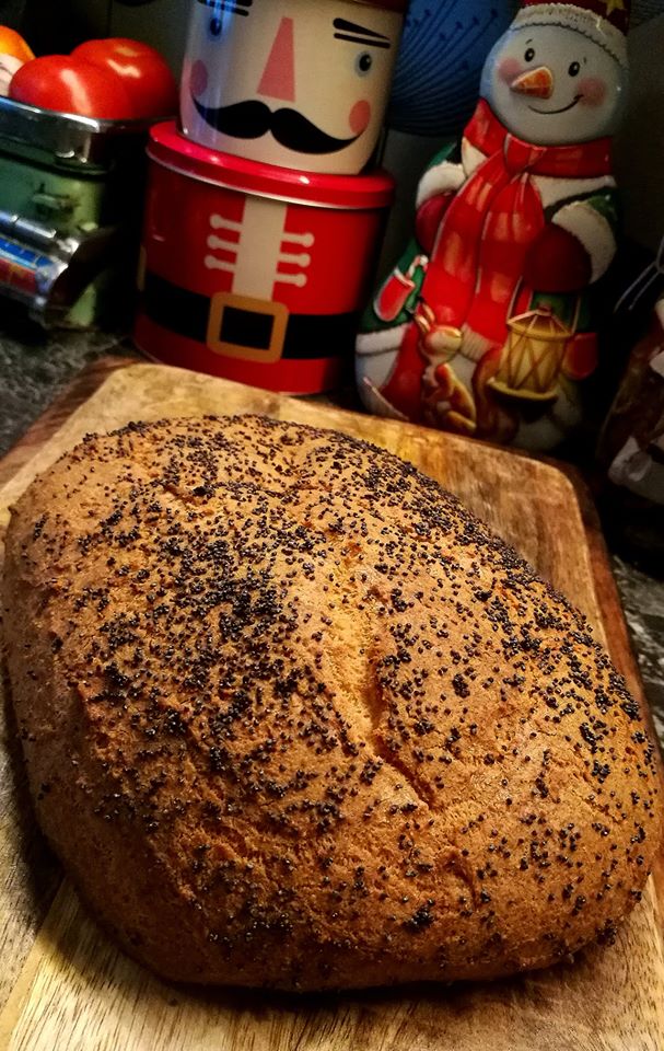 Pensle med olivenolje og topp med valmuefrø.