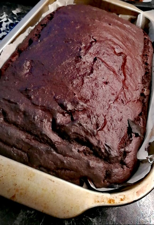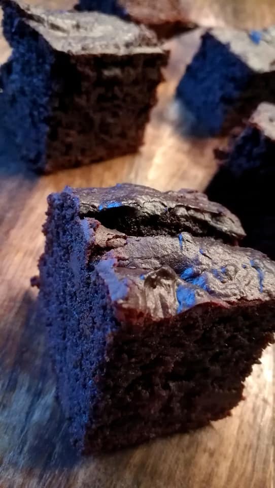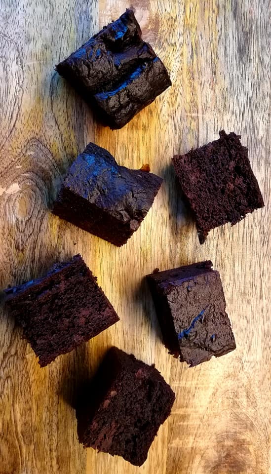 Kjøres på full guffe til en jevn røre. Tilsett grovhakket sjokolade og blend sjokoladen inn. Ha røren i en mellomstor og avlang form kledd med bakepapir. Formen må være ca halvparten av en skuffekake. Spray formen med formfett/smør slik at bakepapiret fester seg til kanten. Hell røren over i formen og stek brownien på 175g i midten på over og undervarme i 25-30 min. Brownien er ferdig når den beveger seg bittelitt når du rister på stekebrettet. La kaken avkjøle helt før du skjærer i den. Brownien oppbevares kald eller fryses.