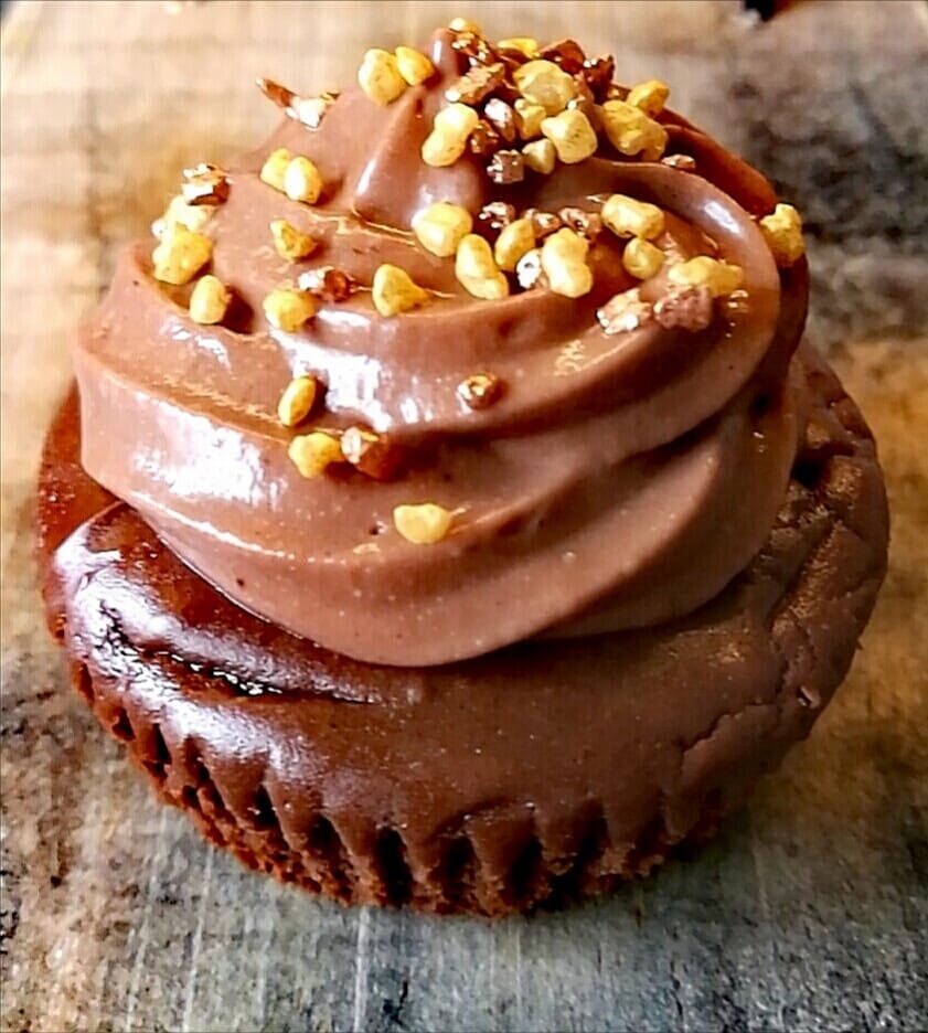 Pass på at alle ingredienser har romtemperatur. Du kan eventuelt varme philadelphia i mikro i 30-40 sek hvis den er kald. Pisk philadelphia luftig sammen med sukrinmelis, proteinpulver og vaniljeekstrakt med en eletrisk håndvisper/kjøkkenmaskin. Smelt sjokoladen i omganger i mikro eller i en gryte på svak varme til sjokoladen er jevn og blank. Tilsett sjokolade og pisk den godt inn. Tilsett egg og visp til alt er blandet. Ha muffinsformene oppi et muffinsbrett om du har. Tilsett en isskje eller stor spiseskje røre i hver form og jevn røren litt utover med en teskje.