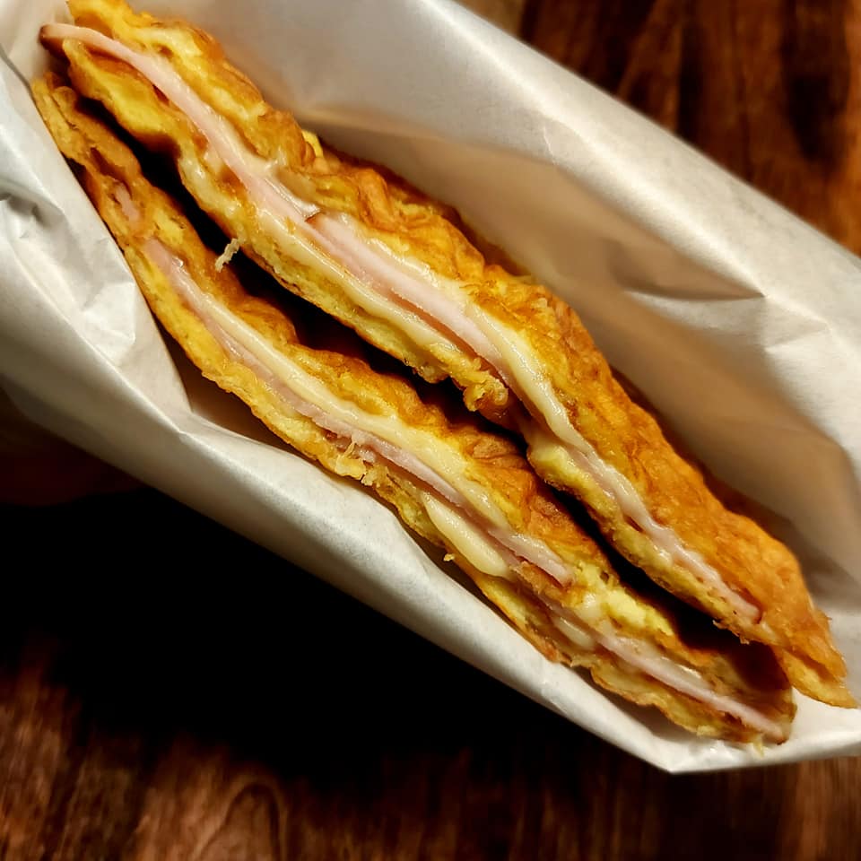 Pisk sammen alle ingredienser utenom ost. Tilsett revet ost og rør godt om. Spray eller smør jernet godt. Hell halvparten av røren i et lite vaffeljern og la chaffle steke til gyllen. Hos meg tar det ca 1,5-2 min. Når de er ferdig stekt topper du den ene chaffle med ost, skinke, litt sennep og ditt favoritt krydder. Ha gjerne på ketchup om du også foretrekker det. Legg oppå den andre chaffle og stek videre til osten har smeltet. Har du et stort vaffeljern, holder røren til 1 chaffle og da bretter du den bare dobbelt før du ettersteker den.