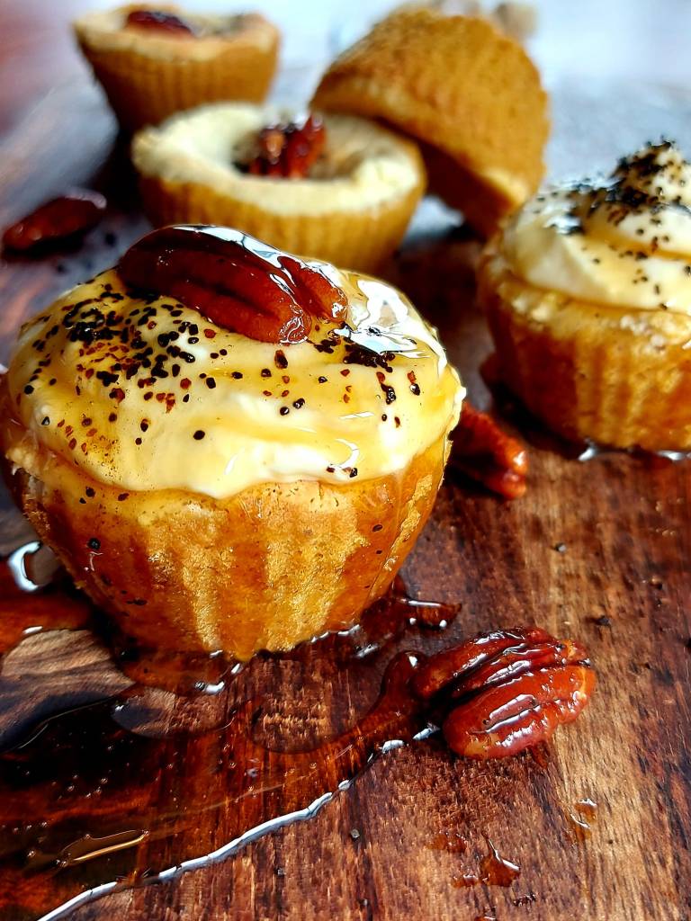 Gresskarmuffins med ostekrem, ristede pekannøtter og lakris