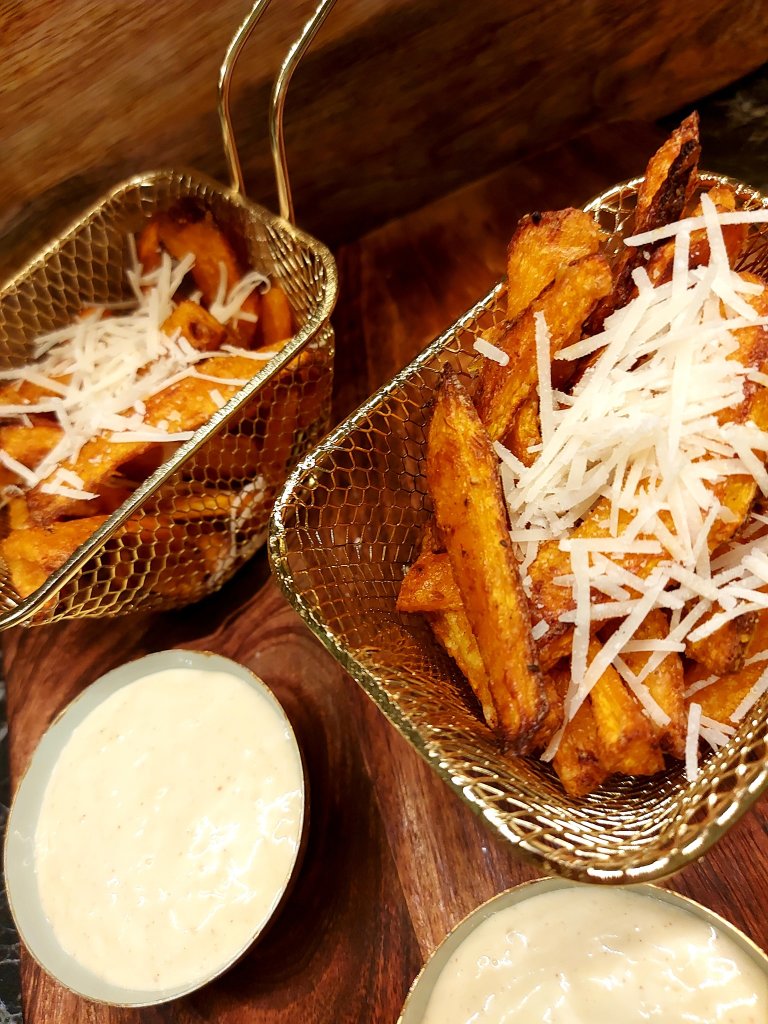 Hva smaker vel bedre enn crispy gresskarfries dyppet i trøffelaioli med parmesan på en høstdag. Digg som peiskos, på soffen under pleddet eller til en bedre middag. Egentlig så passer de til det meste og smaker bare så yummy.
