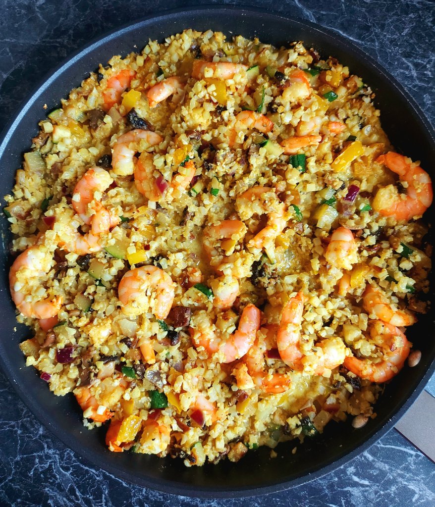 Min paella er lavkarbo varianten og veldig forenklet med få ingredienser.