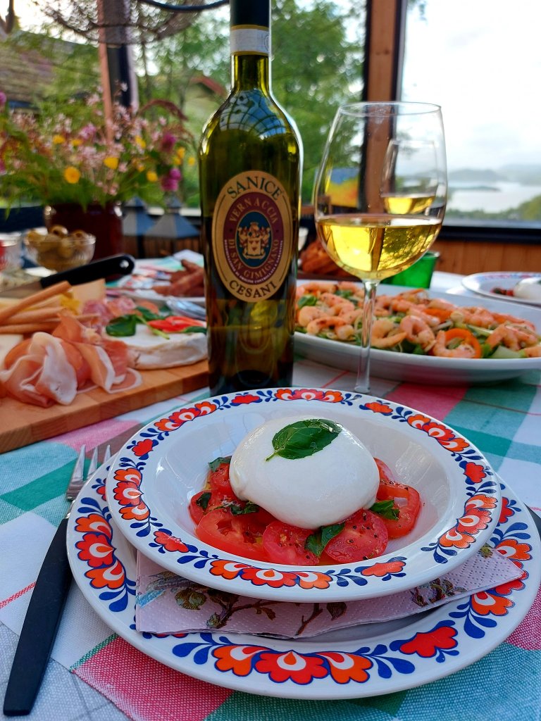 Når man feirer 6 års bryllupsdag er kun det beste godt nok. Un tavolo per due con vista mare. Et bord for to med utsikt over havet og en flaske vin i fra familien sin vingård Cesani ❤