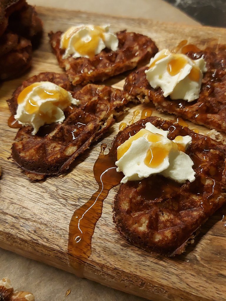 Endelig sesong for gresskar og tid for å trylle frem nye oppskrifter med denne næringsrike frukten. Fyr i peisen, en god kopp kaffe og crunchy vaffel med krem og salt karamell. Kan du tenke deg en bedre frokost.