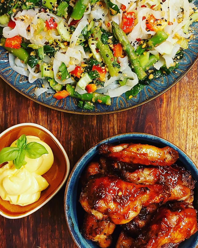 Helg=kosen skal på bordet. Her i huset kjører vi ikke Norsk fredagstaco, men alt annet spennende fra forskjellige verdenshjørner. Denne gangen disket jeg opp med Japansk Fusion. Sticky kylling med smak av søtt og salt.