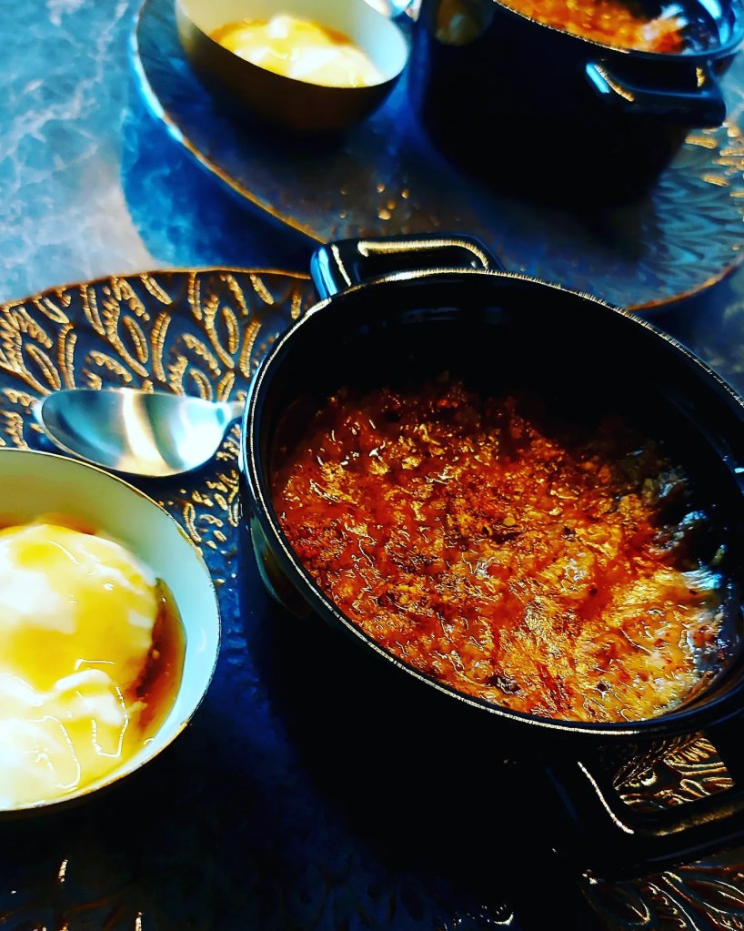 For prikken over i, server rabarbracrumbel sammen med yoghurt naturell eller Crème Fraîche med litt sukrinsirup over.
