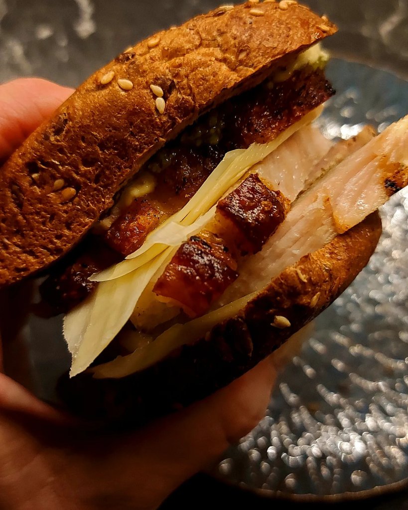 Server porchetta i godt lavkarbobrød som eks frøloff toppet med salsa verde eller pesto. Frøloff med middelhavsurter finner du oppskrift på under kategori brød.