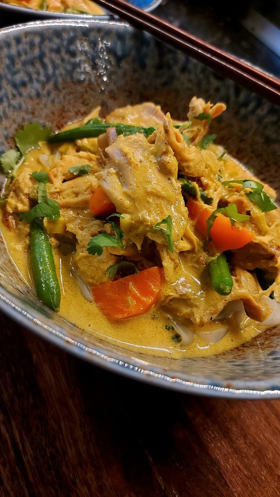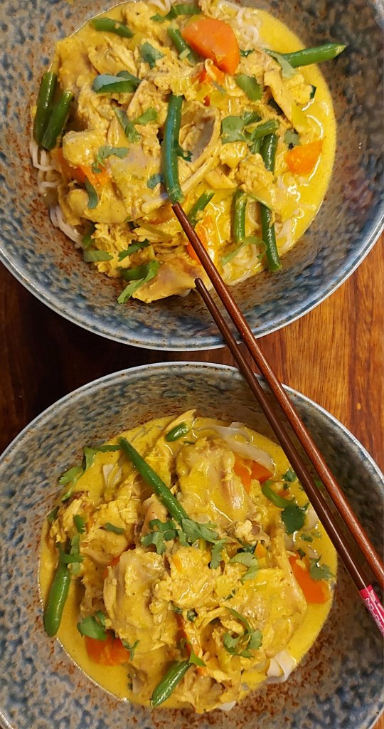 Vitnamesisk kyllinggryte med konjacnudler byr på helt andre smaker enn det man muligens er vant med når man spiser mat i fra asia. Denne kyllinggryten er mild, rund og har en deilig kremet konsistens.