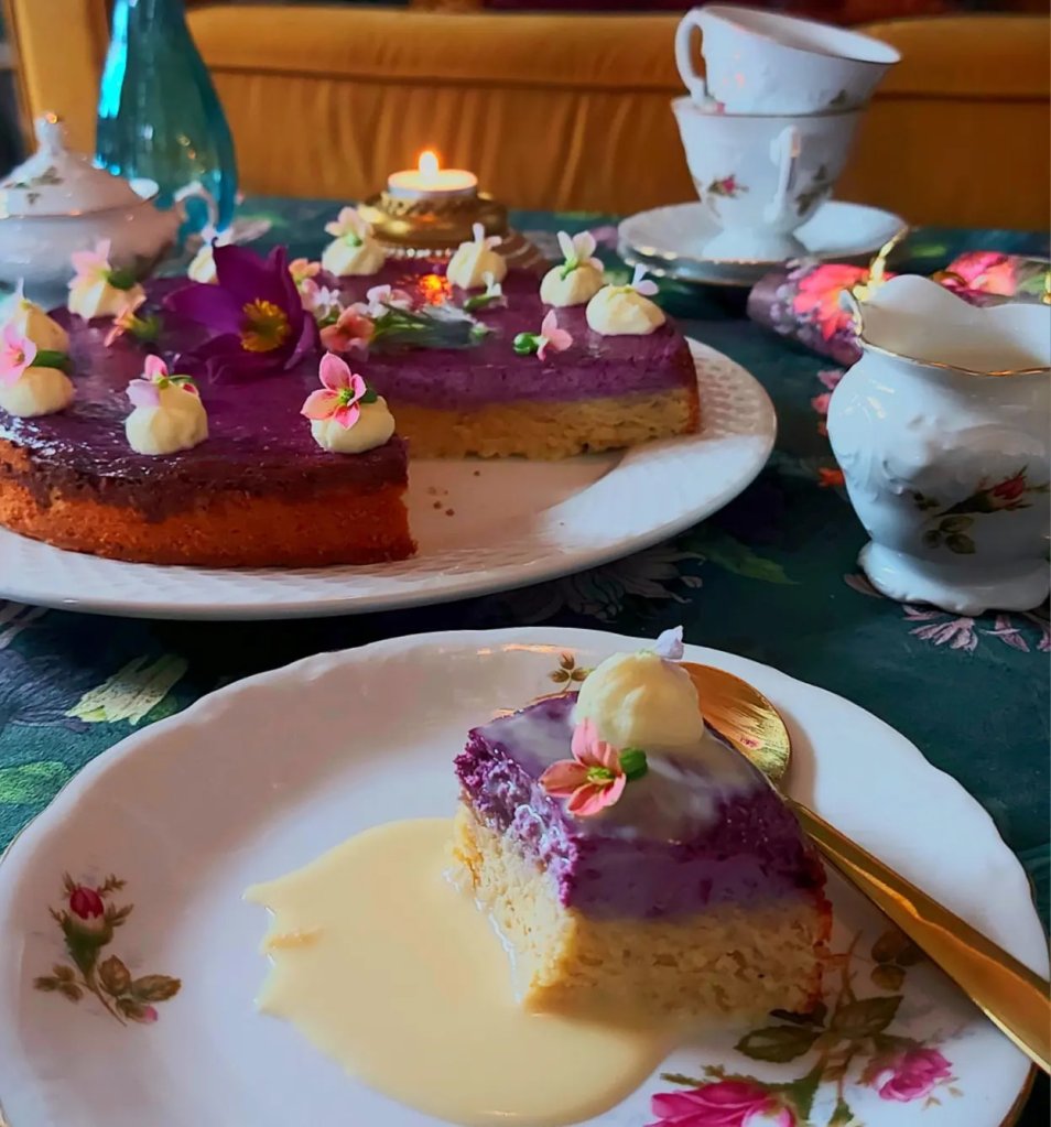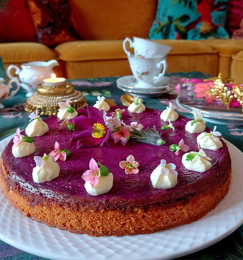 Siden jeg skulle i konfirmasjon til min skjønne yngste tanteunge, måtte jeg slå til med en ny, spennende og superdigg kake. Altså blåbærkake med ostelokk toppet med sitrussmørkrem og spiselige blomster. Siden fargen på kaken ble så amazing fikk den navnet Purple Prince Cake. Rett og slett en hyllest til en av mine desiderte favoritt artister gjennom livet ❤