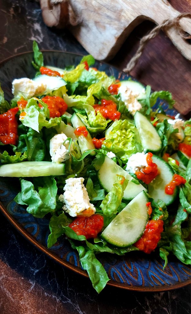 Hjemmelaget eller kjøpt ajvar. Oppskrift på hjemmelaget ajvar finner du på bloggen